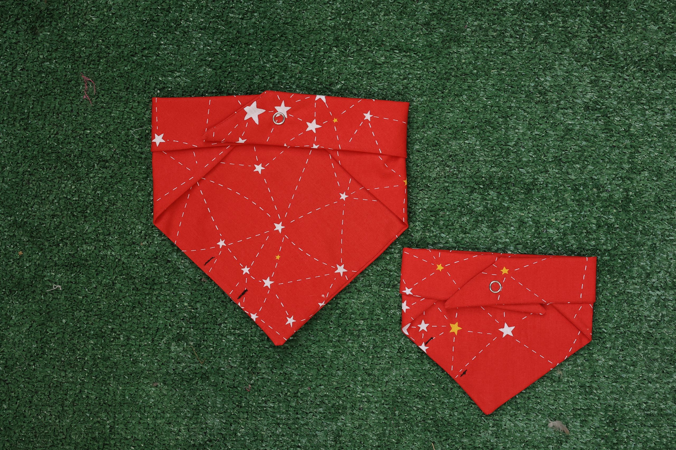 Sevimli dostunuzun tarzını öne çıkaracak bu kırmızı kedi bandanası, minik yıldız desenleriyle hem şirin hem de enerjik bir görünüm kazandırır. Yumuşak dokusuyla bilinen %100 pamuk poplin kumaştan üretilmiştir; bu sayede kedinizin boynuna rahatça oturur ve rahatsızlık vermez.